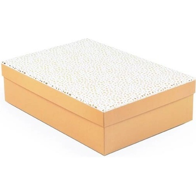 Celoroční dárková krabice o rozměrech 27,5 x 19,5 x 7,5 cm NÁHODNÝ MIX Dárková krabice v mixu barev se zlatými puntíky. Vhodná pro slavnostní příležitosti, dekorativní účely,...