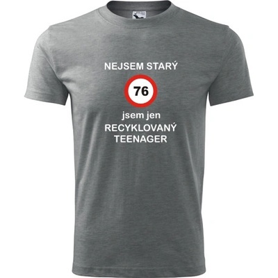 Vtipné dárky k 76 narozeninám pro muže. Šedé tričko jsem recyklovaný teenager 76. Nabízené velikosti jsou S, M, L, XL, XXL, XXXL. Výběr z 12 barev. Tričko patří do kategorií...