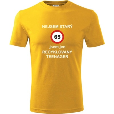 Dárky k 65 pro muže. Žluté tričko jsem recyklovaný teenager 65. Nabízené velikosti jsou S, M, L, XL, XXL, XXXL. Výběr z 12 barev. Tričko patří do kategorií Dárek pro muže k 65....