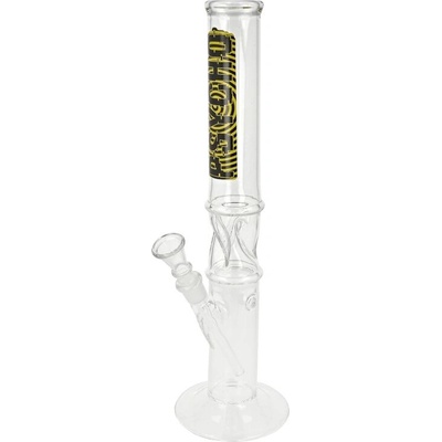 Skleněný bong Psycho Straight. Rovný transparentní bong je na čelní straně zdobený žluto černým potiskem Psycho. Ice bong ukončeným slabým hrdlem je vybavený vnitřní "spirálou"...
