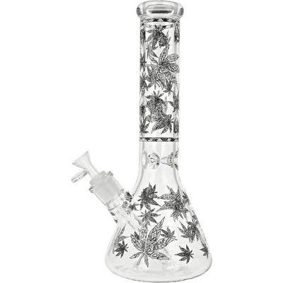 Skleněný bong Super Heroes Beaker Weed Leaves s Glow efektem. Transparentní bong oblíbeného tvaru Beaker je zdobený černobílými listy konopí, které díky efektu Glow in the Dark...