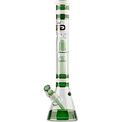 Skleněný bong s perkolací Grace Glass Golden Line. Rovný bong tvaru laboratorní kádinky ve tmavším zeleném tónu s logem Grace Glass, zdobený zlatými proužky je ukončený silným...