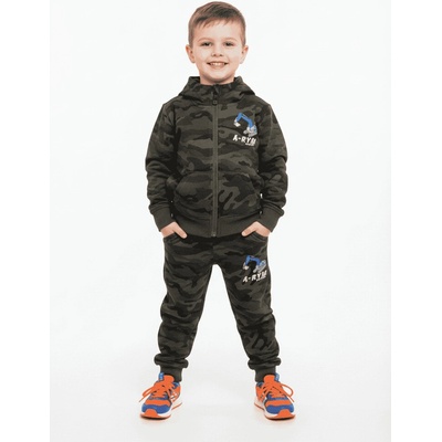 Chlapecká maskáčová tepláková souprava tvořená bavlněnou mikinou a bavlněnými tepláky. Tepláky mají dvě postranní kapsy. Nohavice jsou zakončeny nápletem, pro lepší oblékání...