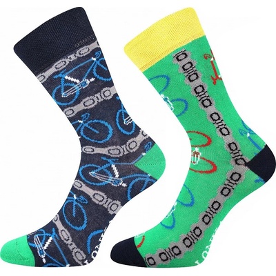 Bavlněné ponožky s "crazy" párováním - každá ponožka je jiná (jiný vzor, jiná barva), motiv kolo - spolu tvoří pár, vhodné pro malé chlapce. Mají pohodlný patent, dobře se nosí...