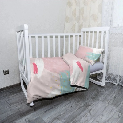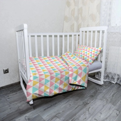 Sablio Dětské povlečení Růžové a bílé trojúhelníky 120 x 90 40 x 60 cm