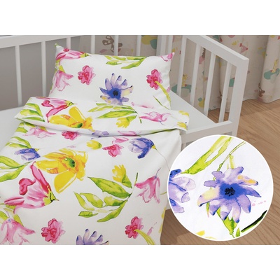 Dětské bavlněné povlečení do postýlky se vzorem žluto-růžových akvarelových květů na bílém podkladu. Je ušité z hustě tkaného 100% bavlněného plátna s certifikátem zdravotní...