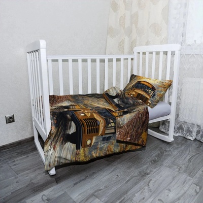 Dětské bavlněné povlečení do postýlky s milým dětským motivem žlutých a šedohnědých aut ve městě na bílém podkladu. Je ušité z hustě tkaného 100% bavlněného plátna s...