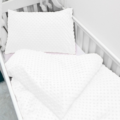 Dětské hřejivé povlečení do postýlky s TOP 3D vytlačeným vzorem puntíků v bílé barvě. Je ušité z plyšově hebké a hřejivé polyesterové látky Minky s certifikátem zdravotní...