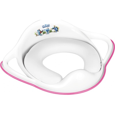 MALTEX Dětské sedátko na WC měkké The Smurfs - bílá/růžová Univerzální sedátko na WC měkké značky Maltex.Poskytuje komfort a pohodlí díky měkké sedací části potažené PVC....