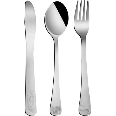 Praktická, odolná příborová sada z nerezové oceli bude provázet vaše děti při samostatném stolování. Souprava obsahuje lžíci, vidličku a nůž a je vhodná pro děti od 3 let....