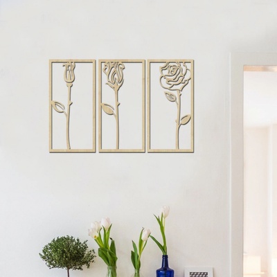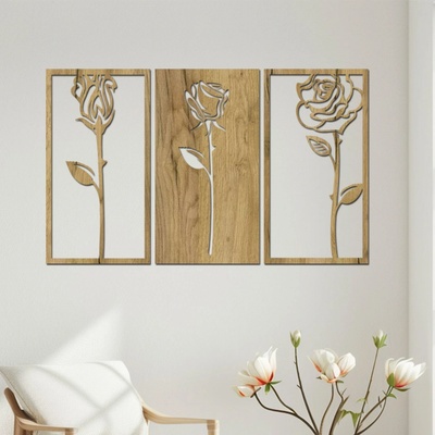 Dřevená dekorace na zeď 3 RŮŽE II Vneste do svého obývacího pokoje či kuchyně dotek 3 dílného obrazu s motivem růží. Doplňující informace k dřevěnému obrazu: - výběr z...