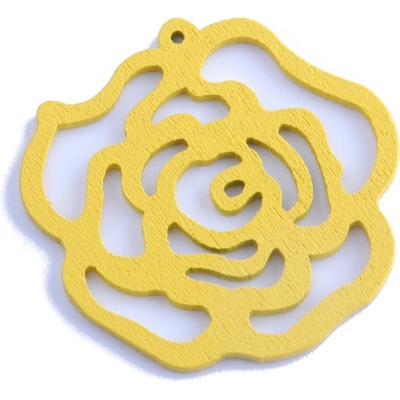 Dřevěný výsek ve tvaru růže. Velmi lehlé, hodí se na výrobu náušnic. Velikost:47mm Cena za 1ks.