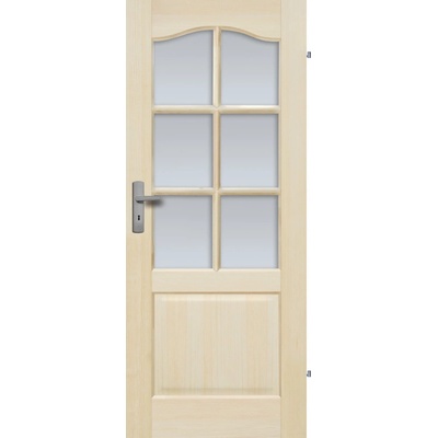 KONSTRUKCE Kazetové masivní dveře (smrk): Sukové provedení: dveře jsou vyrobeny z borovicového dřeva se suky. Široký rám až 12 cm zaručí větší pevnost dveří a delší životnost....