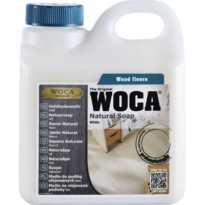WOCA mýdlo na olejové podlahy bílé 1l Jemné mýdlo pro hloubkové čištění, odstraňuje nečistoty a zabraňuje vysychání a praskání dřeva. Na povrchu zanechává tenkou, prodyšnou...