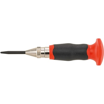 Automatický důlčík Provedení: Přesné provedení se samočinnými údery, z poniklované automatové oceli s 2složkovou ochranou rukou. Štíhlá stopka s vyměnitelnými, kalenými hroty....