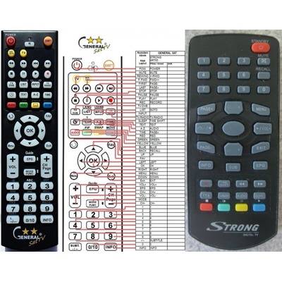 Náhradní dálkový ovladač STRONG SRT8110. Tento ovladač je dodáván ve verzi značkového ovladače General SAT-TV (zobrazen vlevo!) a pošleme Vám jej již nakonfigurovaný pro Váš...