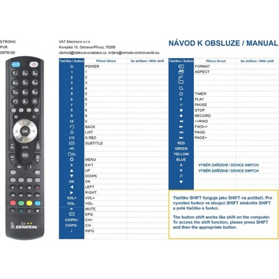 PLNOHODNOTNÁ náhrada magického dálkového ovladače STRONG SRT2400, SRT2221, SRT2022 s integrovanou klávesnicí a možností nastavení na další přístroje.Dálkový ovladač byl vyvinut...