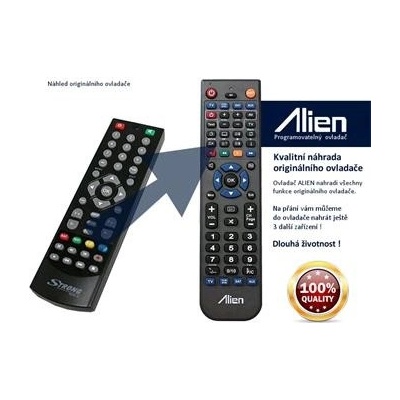 Dálkový ovladač Strong SRT 8209 Kvalitní náhradní dálkové ovládání jiného vzhledu pro DVB-T2 prijímace Strong. Pod znackou ALIEN získáte kvalitní a levnou náhradu...
