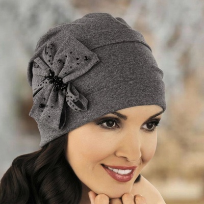 Bavlněná dámská čepice je ušitá z kvalitní bavlny s vysokou hustotou tkaní. Čepice je skvěle propracovaná a ručně zdobená květem a vyšívanými kamínky tón v tónu, má moderní...
