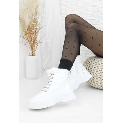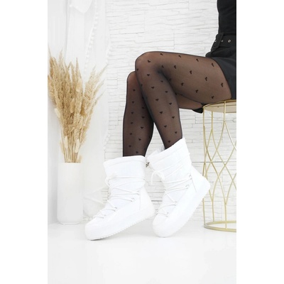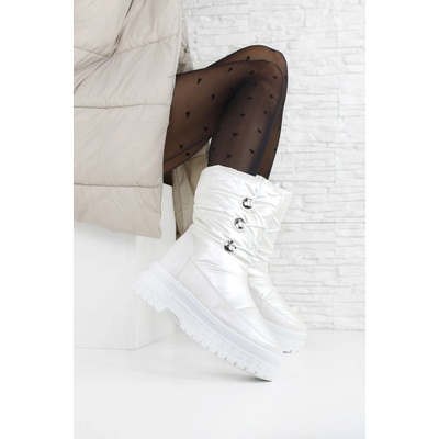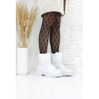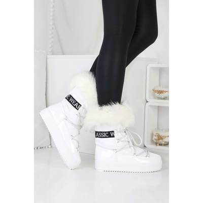 Bílé sněhule Typ zapínání: šněrování Podrážka: nízký vzorek Zateplení: hrubý kožíšek Materiál: Svršek: syntetika, textil Podšívka: textil, Podešev: syntetika Výška boty: 16...