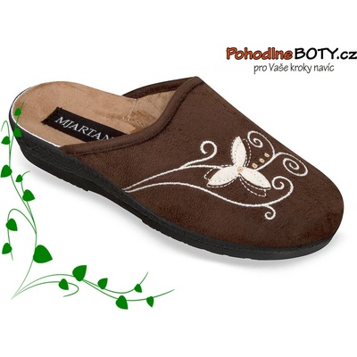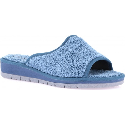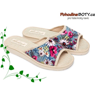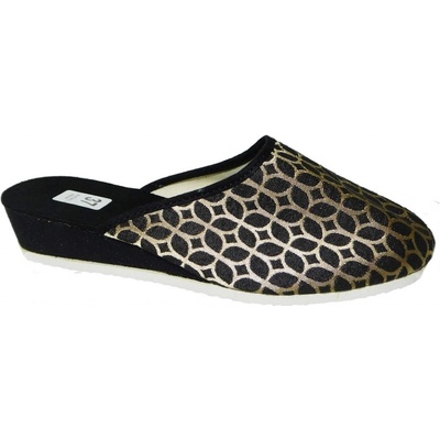 Oblíbený model dámských pantoflí. Pohodlný klínek, tvarovaná stélka. Kvalitní domácí obuv chrání Vaše nohy a klouby, hlavně v případě tvrdých povrchů. Tmavá podešev nebarví -...