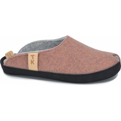 Staro-růžové papuče TOKU Brussels z ovčí vlny, ručně vyráběné v Estonsku. Komfort, anatomická vložka, podpora klenby, udržitelné balení v bavlněném sáčku.