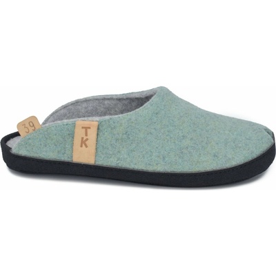Mentolově zelené papuče TOKU Brussels z ovčí vlny, ručně vyráběné v Estonsku. Komfort, anatomická vložka, podpora klenby, udržitelné balení v bavlněném sáčku.
