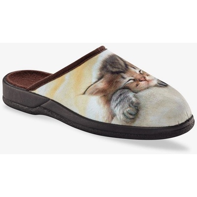 Měkké a jemné, takové jsou tyto pantofle! Zdobené roztomilým motivem spícího koťátka. S hřejivou textilní podšívkou. Protiskluzová, elastomerová podrážka. Svršek a stélka z...
