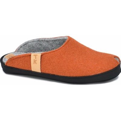 Papuče TOKU Brussels z ovčí vlny v terakotové barvě, ručně vyráběné v Estonsku. Komfort, anatomická vložka, podpora klenby, udržitelné balení v bavlněném sáčku.