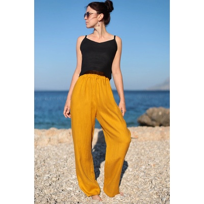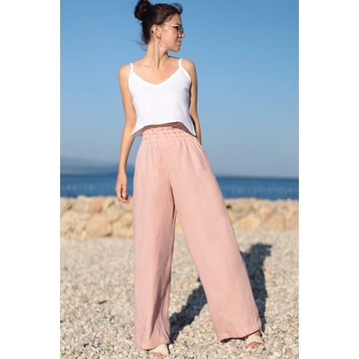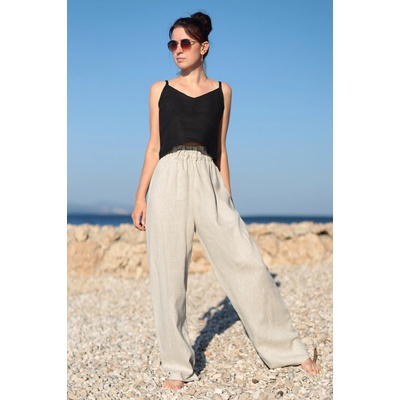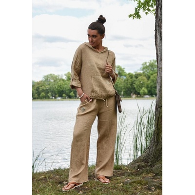 HNĚDÉ LETNÍ LNĚNÉ KALHOTY PECA del SOL: hnědé dámské letní lněné kalhoty s vysokým pasem rovný a širší střih nohavic pro dostatek pohodlí během letních dnů prodyšný 100% lněný...