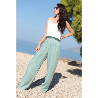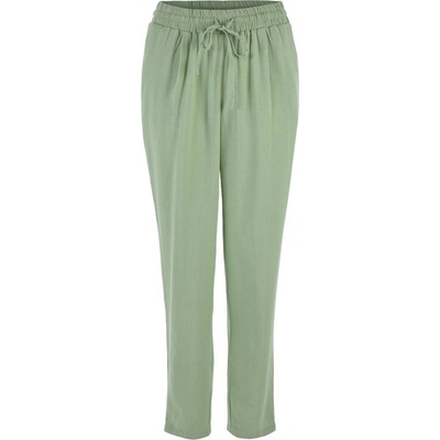 LNĚNÉ KALHOTY ZELENÉ Vero Moda: dámské kotníkové kalhoty světle zelená / hrášková barva vzdušný střih středně vysoký pas na gumu a tkaničku díky příměsi viskózy se materiál...