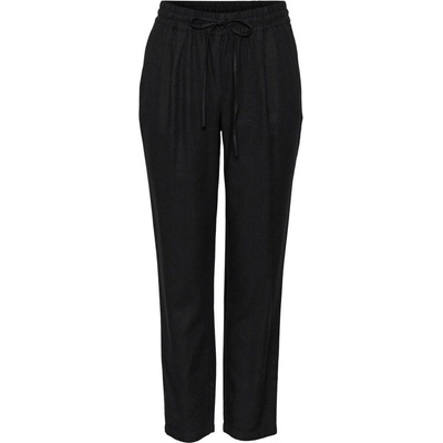 LNĚNÉ KALHOTY ČERNÉ Vero Moda: dámské kotníkové kalhoty černá barva vzdušný střih středně vysoký pas na gumu a tkaničku díky příměsi viskózy se materiál nemačká a snáze se...