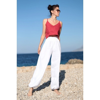 Dámské jednobarevné harémové kalhoty s vysokým pasem, ušité ze 100% lnu, jsou pro Vás navržené a ušité s láskou k přírodě i člověku v českém Podkrkonoší. Kalhoty jsou bez...