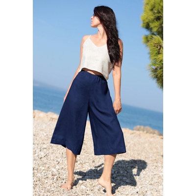 Dámské 100% lněné 3/4 cullotes kalhoty jsou pro Vás navržené i ušité s láskou a péčí v českém Podkrkonoší jednobarevné bez zapínání guma v pase vyšší pas minimalistický střih...