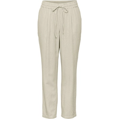 SVĚTLÉ LNĚNÉ KALHOTY Vero Moda: dámské kotníkové kalhoty světlá šedo-béžová barva vzdušný a rovný střih středně vysoký pas na gumu a tkaničku díky příměsi viskózy se materiál...