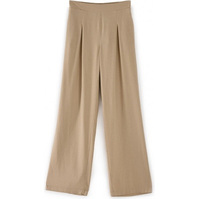 LNĚNÉ ŠIROKÉ KALHOTY Vero Moda: dámské lněné kalhoty světle béžová / písková barva sámky na předních nohavicích vysoký pas rovný a širší střih nohavic vzadu v pase guma bez...