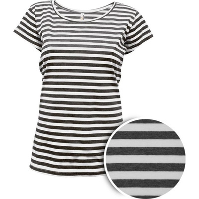 Černobílé melírované pruhované dámské tričko s krátkým rukávem, které je doplněné bílým průkrčníkem. Materiál: 60 % bavlna a 40 % polyester, silikonová úprava, příjemné na...