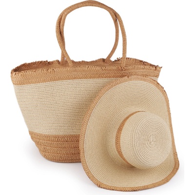 Prima-obchod dámský klobouk slamák a plážová taška sada 1 přírodní sv.