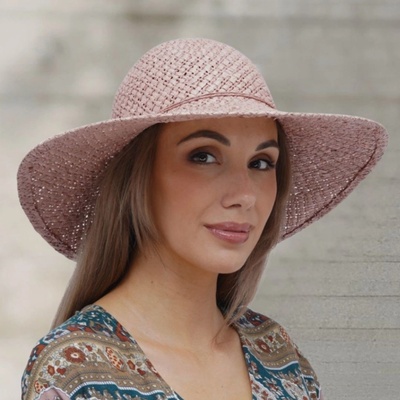 Krumlovanka dámský letní nemačkavý slamák Cloche melange 100% Paile natural P-12528 starorůžová