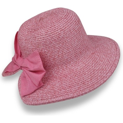 Krumlovanka dámský letní nemačkavý slamák Cloche s mašlí lososový melange P-14033