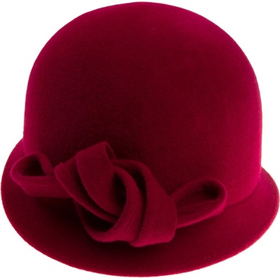 Klasický dámský klobouk s kulatou hlavou ve tvaru cloche - zvonku je velmi oblíbeným elegantním kloboučkem. Klobouček má krásnou vínovou barvu a plstěné zdobení tón v tónu,...