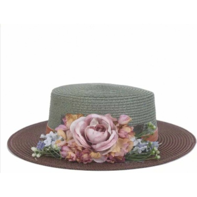 Dámský klobouk zdobený květy Dámský klobouk zdobený květy .Vhodný na běžné nošení i sváteční příležitost. Stahovací potní pásek. Barva originál - originál Velikost...