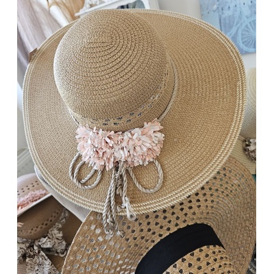 Dámský letní klobouk se střapatým okrajem má širokou krempu a je ozdoben černou kloboukovou stuhou s malou broží. Klobouček je lehoučký a plně stíní. Velikost vhodná na obvod...
