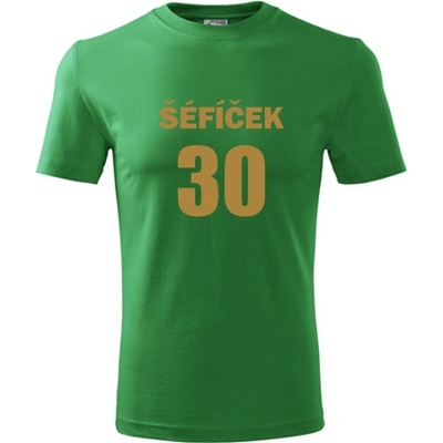 Zelené tričko Šéfíček 30. nabízené velikosti jsou S,M,L,XL,XXL,XXXL. Tričko je zařazeno v sekcích Dárek pro muže k 30, Drobné dárky pro kolegy, . Technologie tisku: Tisk na...