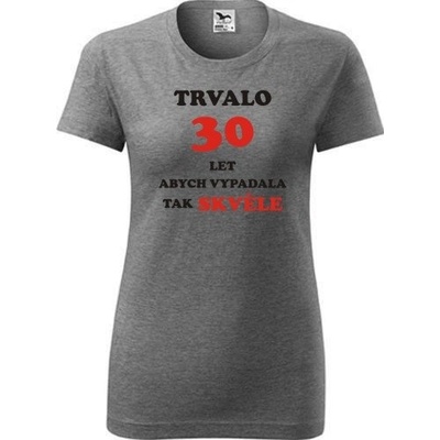 Šedé dámské tričko trvalo 30 let. nabízené velikosti jsou S,M,L,XL,XXL. Výběr z 12ti barev. Tričko patří do kategorií Dárek pro ženu k 30, Dárek pro manželku, . Technologie...