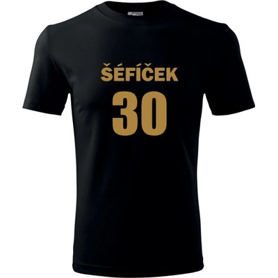 Černé tričko Šéfíček 30. nabízené velikosti jsou S,M,L,XL,XXL,XXXL. Tričko je zařazeno v sekcích Dárek pro muže k 30, Drobné dárky pro kolegy, . Technologie tisku: Tisk na...