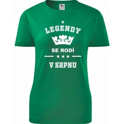 Zelené dámské tričko Legendy se rodí v srpnu. nabízené velikosti jsou S,M,L,XL,XXL. Výběr z 12ti barev. Tričko patří do kategorií Dárek pro ženu k 34, Dárek pro ženu k 48, Dárek...