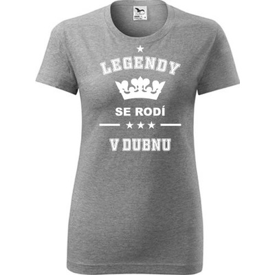 Šedé dámské tričko Legendy se rodí v dubnu. nabízené velikosti jsou S,M,L,XL,XXL. Výběr z 12ti barev. Tričko patří do kategorií Dárek pro ženu k 48, Dárek pro ženu k 52, Dárek...