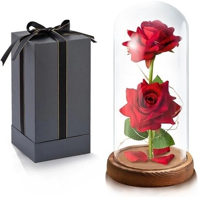 Značka: Yugefom. Číslo modelu: YG3366. Barva: 2 červené růže. Rozměry produktu: 24,5 x 13,5 x 13,5 cm; 420 gramů. Materiál: Skleněná kopule, dřevěný podstavec, umělá květina....