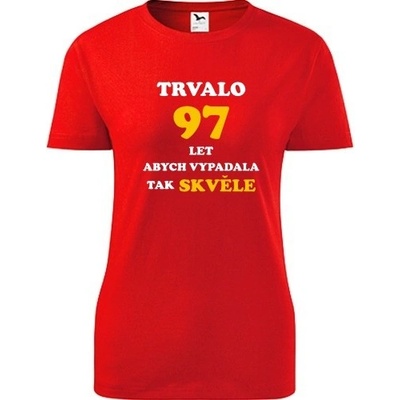Červené dámské tričko trvalo 97 let. nabízené velikosti jsou S,M,L,XL,XXL. Výběr z 12ti barev. Tričko patří do kategorií Dárek pro ženu k 97, Dárek pro babičku, . Technologie...